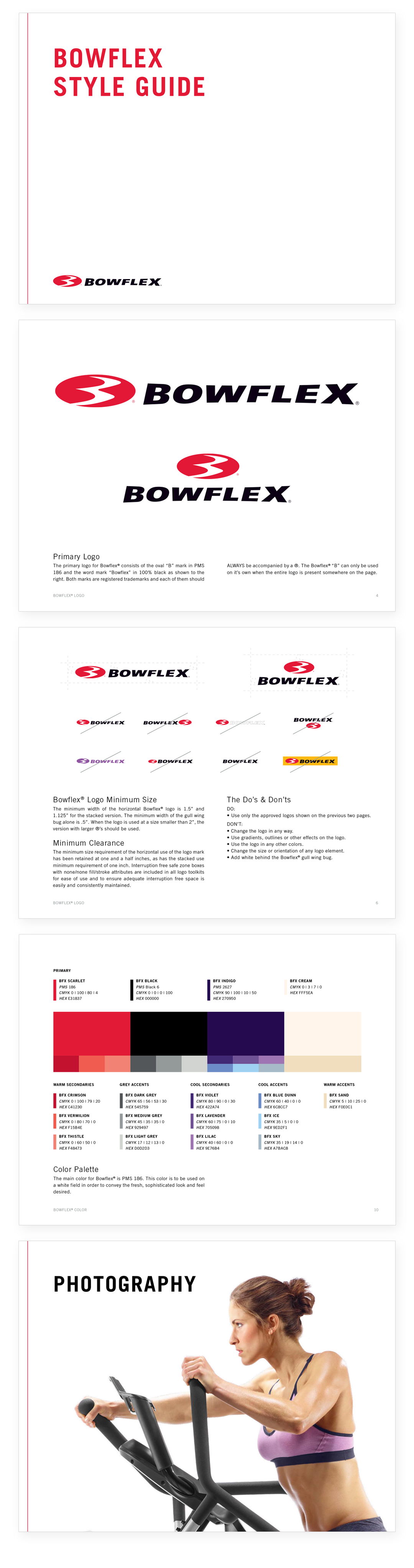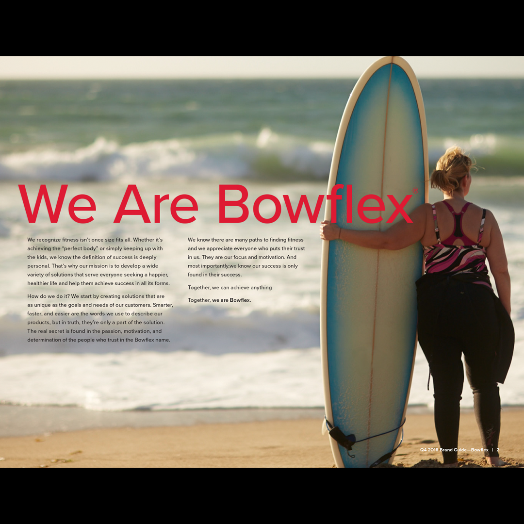Created a 75 page brand guide for Nautilus’ flagship brand, Bowflex, to solidify the brand position and strategy, define target audiences, and create consistency for the brand voice, tone and style.